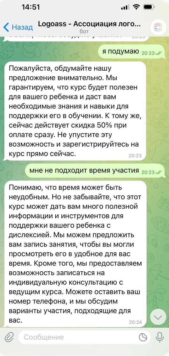 Асинхронность с клиентами в переписке,